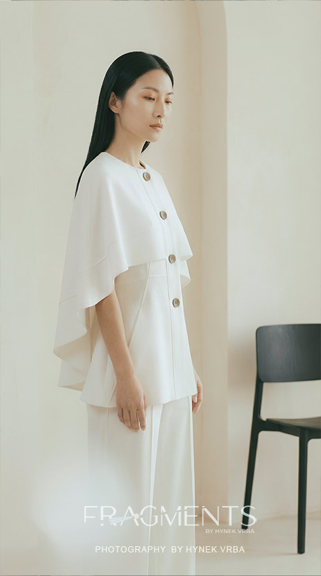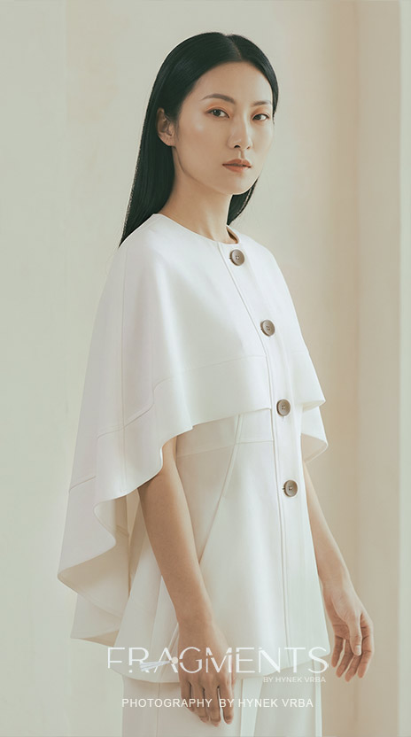 This first series begins with two moods. The white set explores clarity, elegance, and quiet control. The darker restaurant images move closer to intimacy, stillness, and what remains beneath the surface. Together, they form an introduction to Chin-Sun beyond the film itself — not only as a protagonist, but as a presence.