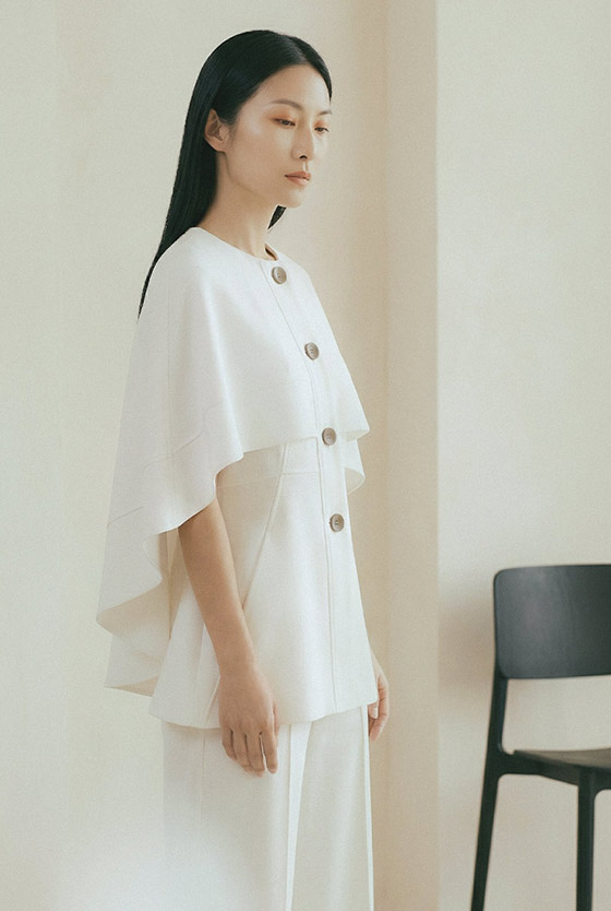 This first series begins with two moods. The white set explores clarity, elegance, and quiet control. The darker restaurant images move closer to intimacy, stillness, and what remains beneath the surface. Together, they form an introduction to Chin-Sun beyond the film itself — not only as a protagonist, but as a presence.
